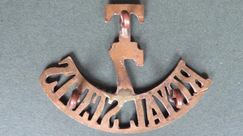 gilding metal title in very good condition with 3 loop fixings. The title is number 727 in Ray Westlake's Collecting Metal Shoulder Titles