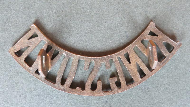 second 1905 pattern gilding metal title in very good condition with 2 hex lug fixings. Number 756 in Ray Westlake Metal Shoulder Titles...
