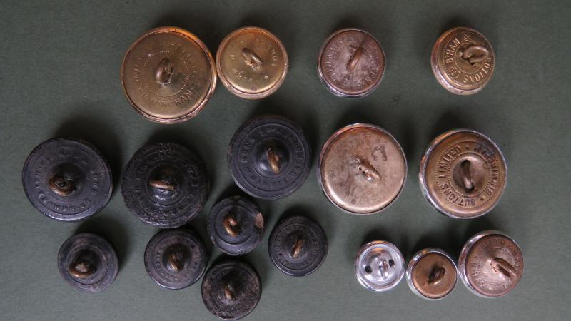 the buttons include pre 1953 Durham Light Infantry (Bakelite), Light Infantry Brigade (Sliver Anodised) and Light Infantry (Gold and Silver Anodised). All in good to very good condition complete with fixings.