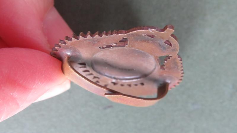 bronze metal badge in near mint condition complete with 2 folding blades. Stamped J R GAUNT LONDON (Under Blades)