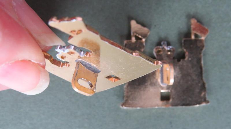 silver & gold anodised aluminium collar badges in near mint condition. I can supply backing plates and pins if requested