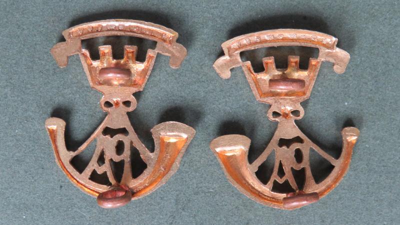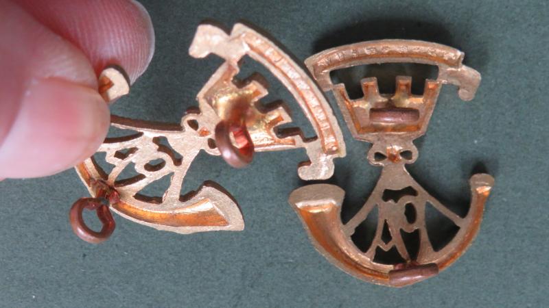 gilding metal collar badges in very good condition. They are number 414 in Colin Churchill's Infantry Collar Badges