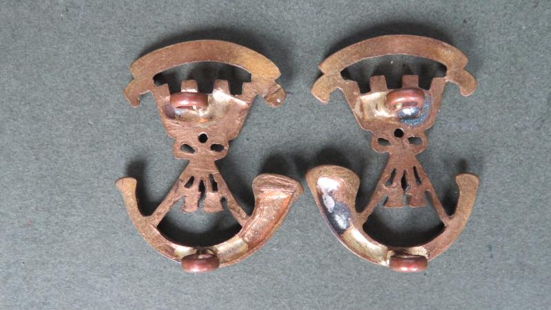 gilding metal collar badges in good condition. They are number 413 in Colin Churchill Army Infantry Collar Badges....