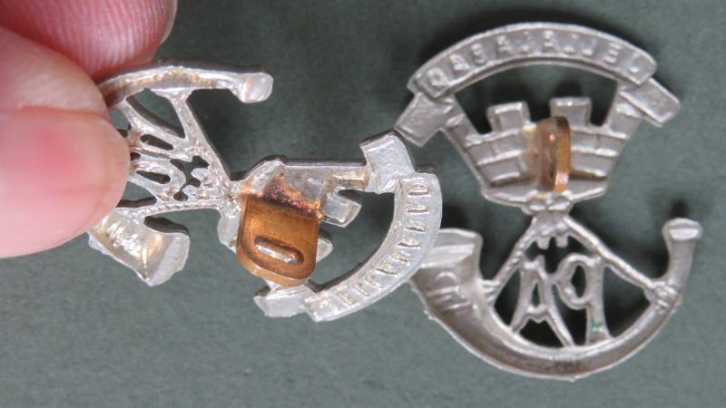 white metal collar badges in very good condition. They are number 416 in Colin Churchill Army Infantry Collar Badges. Single lug variant.