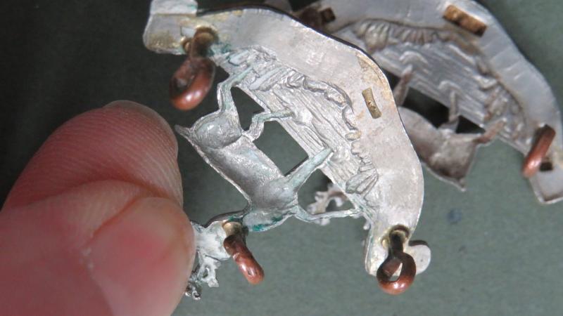 bi-metal collars badge in very good condition and very close pair. The badges are number 509 in Colin Churchill Army Infantry Collar Badges
