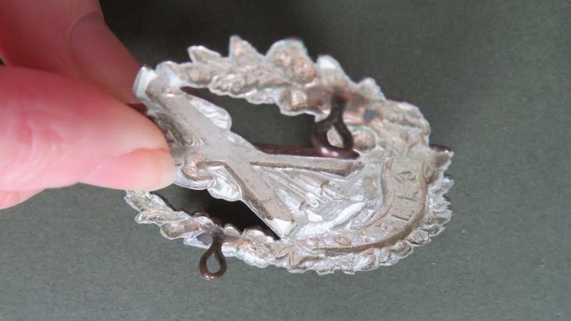 a good early white metal badge in very good condition and KK688. 2 nice toned loop fixings