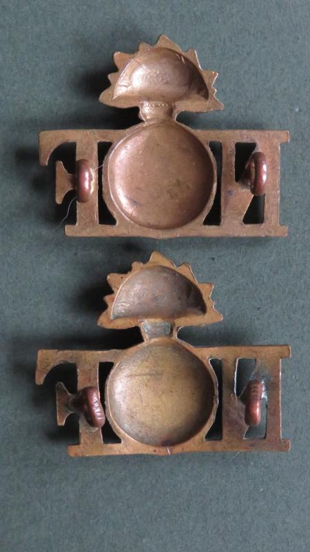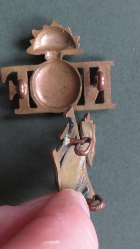 pre 1913 gilding metal titles in very good condition and number mentioned on page 64 in Ray Westlake's Book, Collecting Metal Shoulder Titles. Complete with all loop fixings