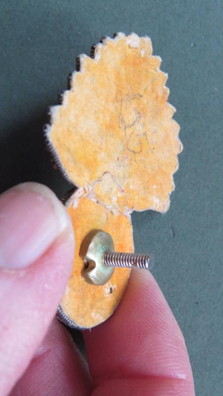 gold wire embroidered and silvered metal center badge in very good condition..