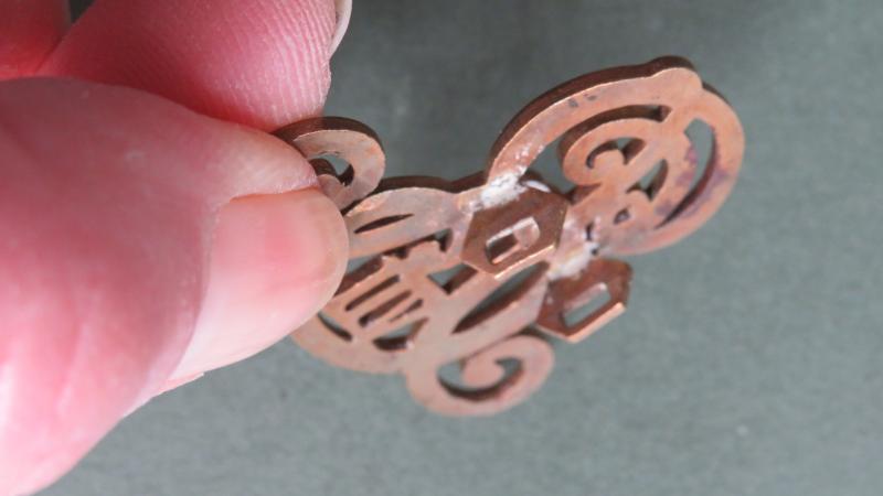 gilding metal cypher in very good condition with 2 hex lug fixings. The badge measures 36mm x 41mm approx.