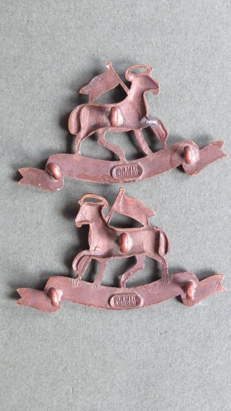 bronze metal collar badges in very good condition. The badges are number 45 in Colin Churchill Army Infantry Collar Badges and made by FIRMIN LONDON