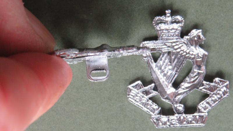 silver anodised aluminium badges in very good condition and a variation of number 117 in British Army Collar Badges 1881 by Churchill & Westlake. I can supply the backing plates and pins if requested