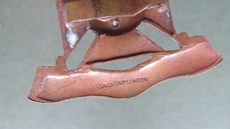 bronze metal cap badge in very good condition made by J R GAUNT LONDON. The badge is KK676 with 2 folding blades