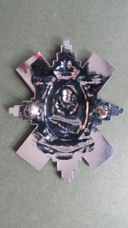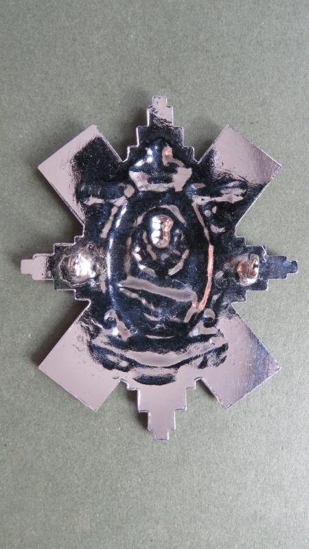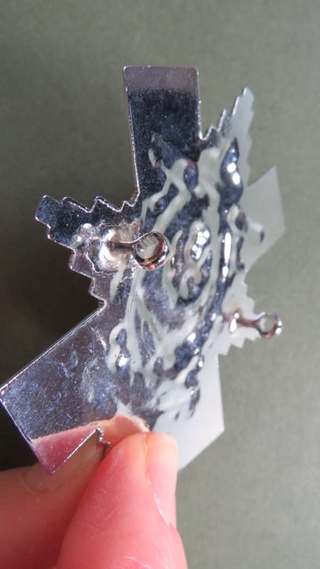 chromed white metal badge in near mint condition with 2 loop fixings. Possibly a Pipers / Drummers Badge.