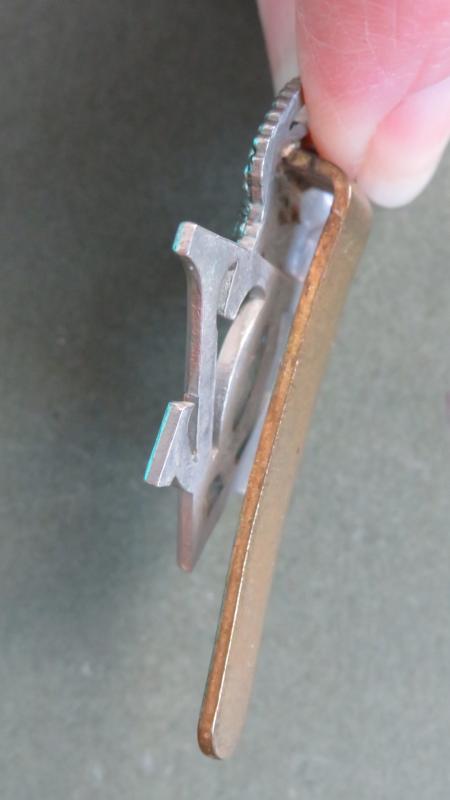 white metal badge in very good condition. The badge is KK745 with a long slider