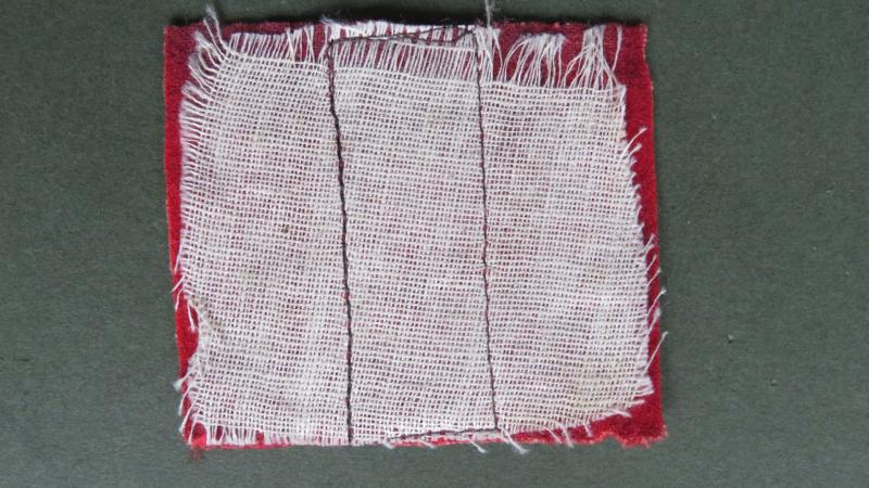 blue felt band on red felt with gauze backing measuring 6cm x 5cm in good condition......