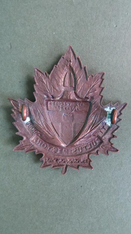 bronze metal cap badge in near mint condition stamped W SCULLY LTD MONTREAL.