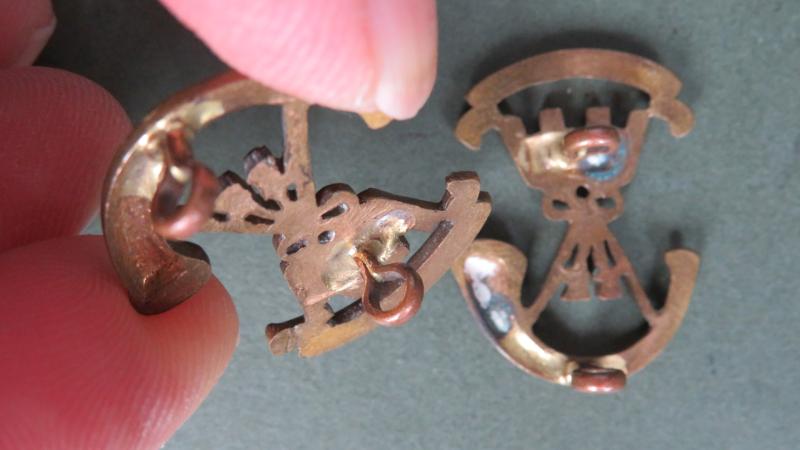 gilding metal collar badges in good condition. They are number 413 in Colin Churchill Army Infantry Collar Badges....