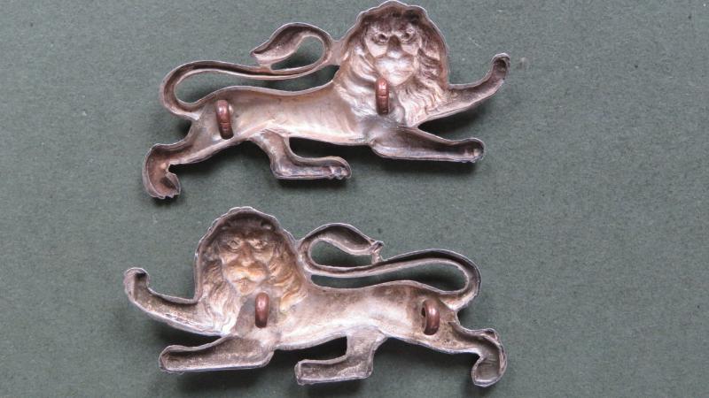 silver plate white metal collar badges in very good condition. They are number 108-110 in Colin Churchill Army Infantry Collar Badges