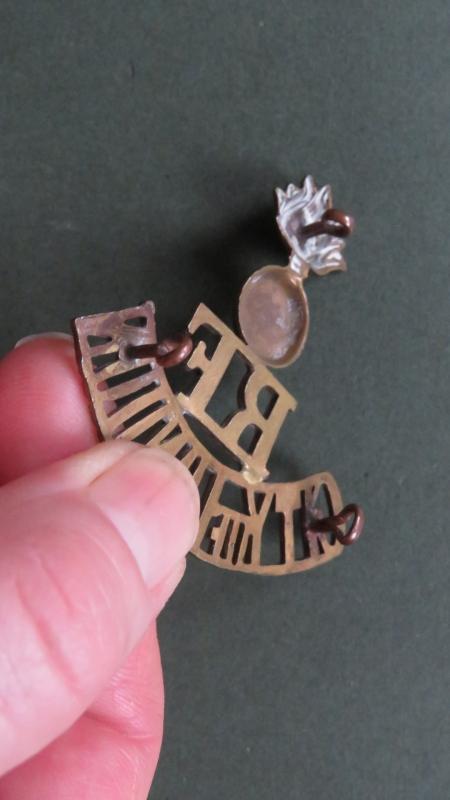 gilding metal title in very good condition and number 1493 in Ray Westlake's Book, Collecting Metal Shoulder Titles. Complete with all loop fixings