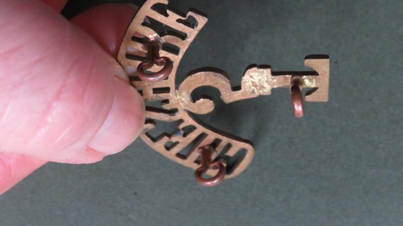 gilding metal title in very good condition and mentioned on page 83 in Ray Westlake's Collecting Metal Shoulder Titles. Complete with 3 loop fixings and backing plate.