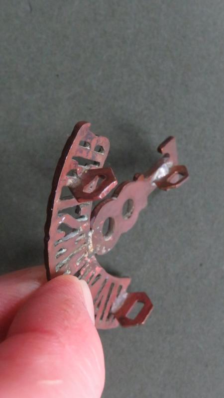gilding metal title in very good condition. The title is the fretted version of number 1312 in Ray Westlake's Book, Collecting Metal Shoulder Titles. Complete with hex fixings.