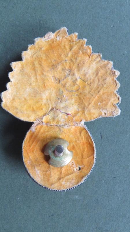 gold wire embroidered and silvered metal center badge in very good condition..