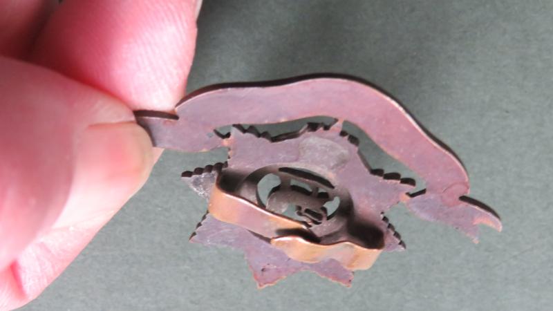 bronze metal badge in very good condition. The badge is KK636 with 2 folding blade fixings.