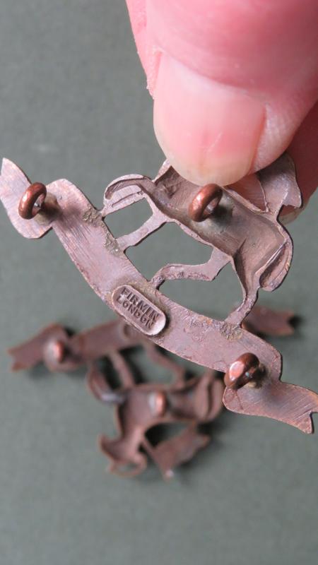 bronze metal collar badges in very good condition. The badges are number 45 in Colin Churchill Army Infantry Collar Badges and made by FIRMIN LONDON