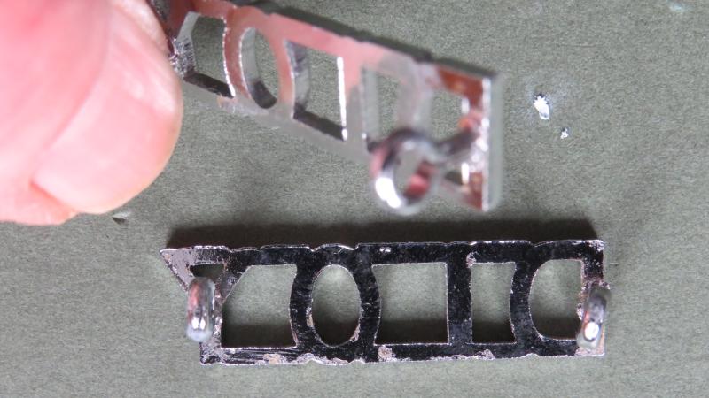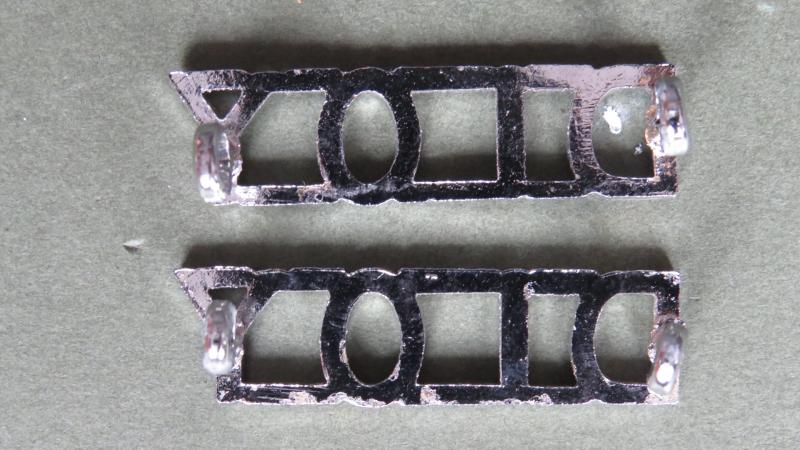 "chromed metal" titles in mint condition and a variation of number 244 in Ray Westlake's Book, Collecting Metal Shoulder Titles. Complete with 2 loop fixings