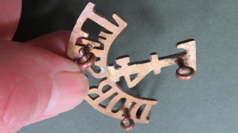 gilding metal title in very good condition and number 1131 in Ray Westlake's Collecting Metal Shoulder Titles. Complete with 3 loop fixings and matching pair available.